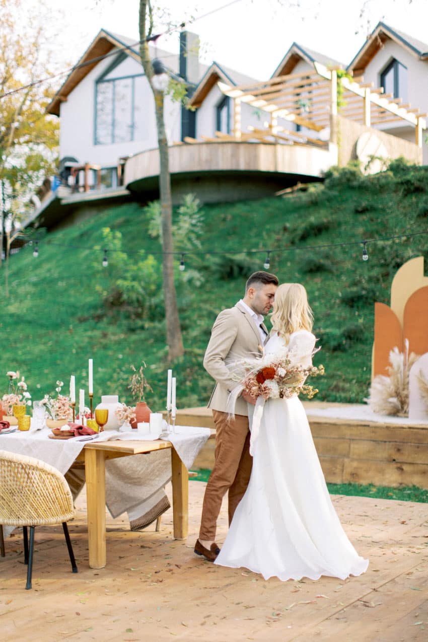 We wanted a wedding in the middle of nature, with a relaxed atmosphere, green grass, lights in the trees and hay bales. With sushi and lemonade. Gabriel wanted a Cigar Bar and I, Taisia, wanted a boho archway and lots of natural white flowers. And a piano. And gold cutlery. And the list could go on and on so the location was getting harder and harder to find.
